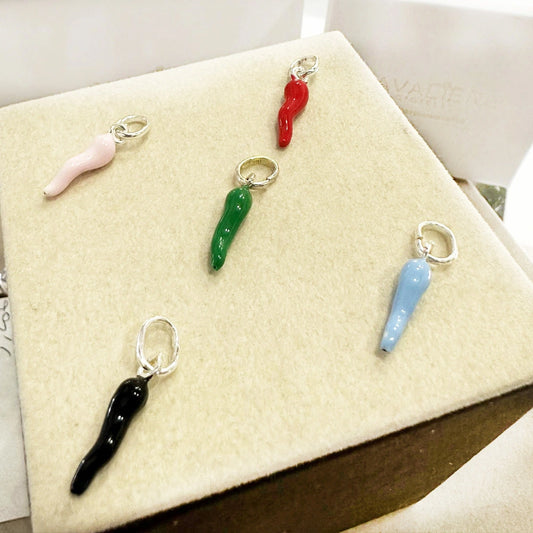 Ciondolo Cornetto Portafortuna Argento 925 Smaltato Vari Colori