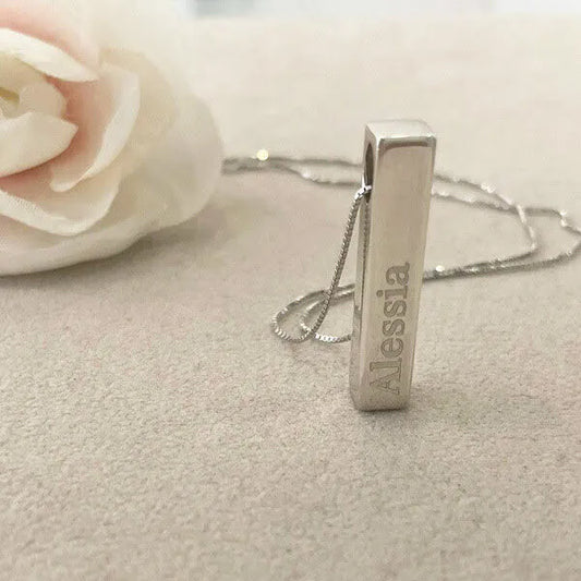 Collana con Nome in Argento Lingotto Diamante Personalizzato