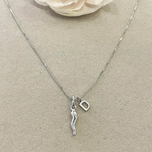 Collana con Cornetto e Iniziale Portafortuna Argento 925