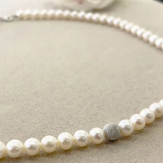 Collana di Perle Naturali Oro bianco 750 sfere effetto diamantato