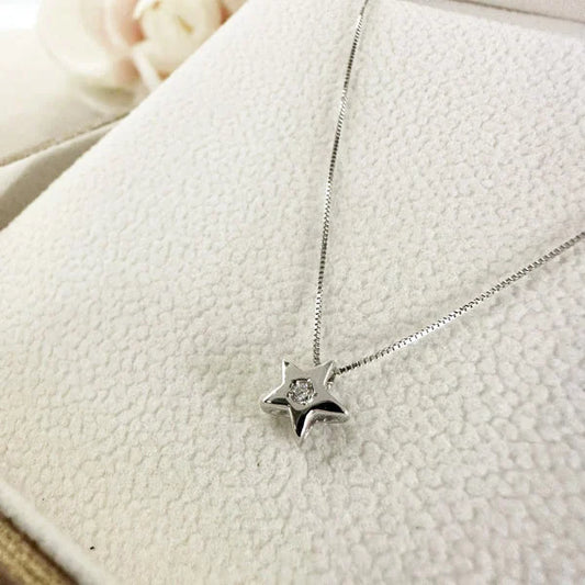 Collana Stella Oro Bianco con Diamante 0,02 kt