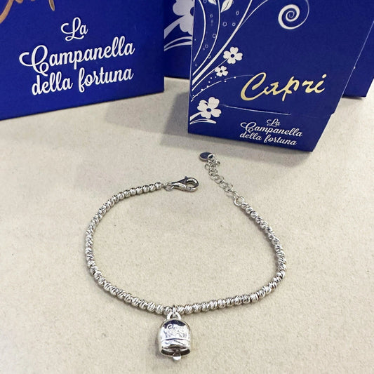 Bracciale con Campanella in Argento Portafortuna Capri ( Sfere Sfaccettate )