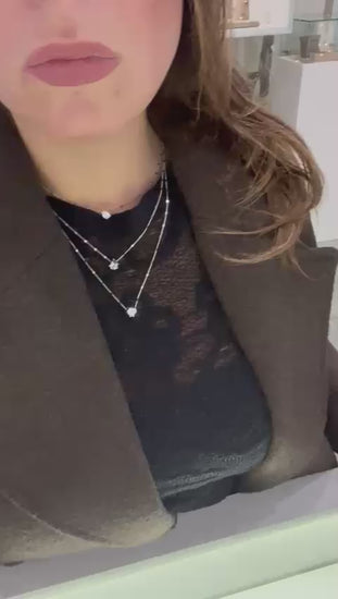 La collana è composta da 3 fili di lunghezza diversa, il filo da 40 centimetri ha come pendente punto luce goccia, il secondo filo è da 45 centimetri con pendente stella e il terzo filo ha una lunghezza di circa 55 cm con pendente cuore.